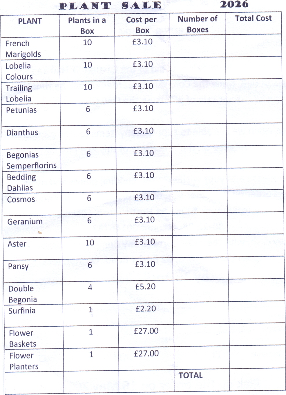 Please ensure you have your order and payment placed by 6pm Thursday 30 April so that orders can be collated and placed in time for delivery on 16 May for the Plant Sale.